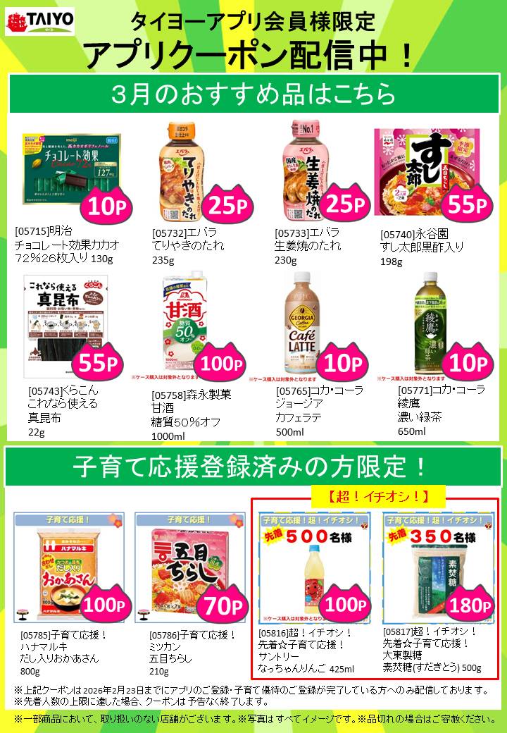 2026年3月 アプリクーポンのご紹介!