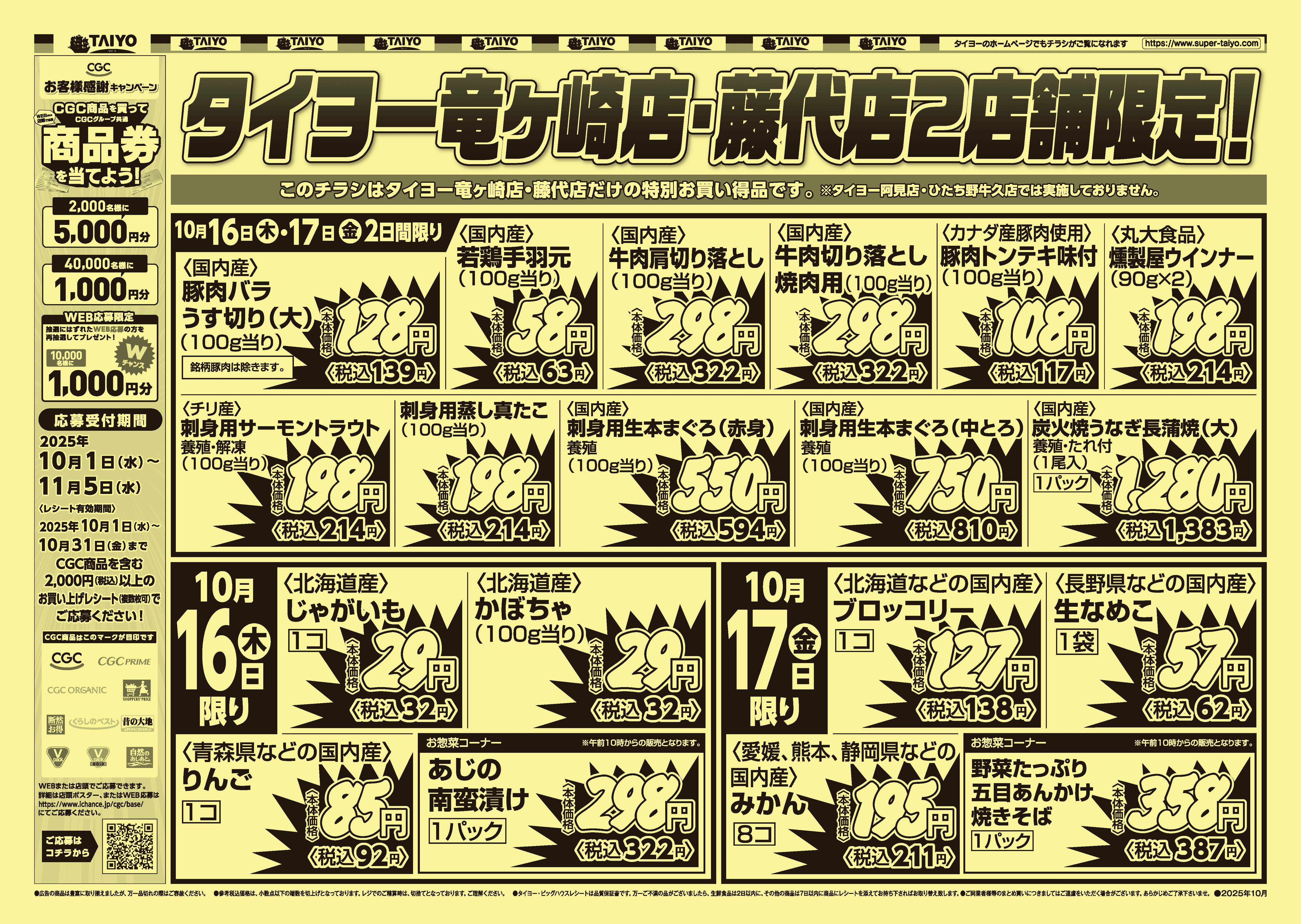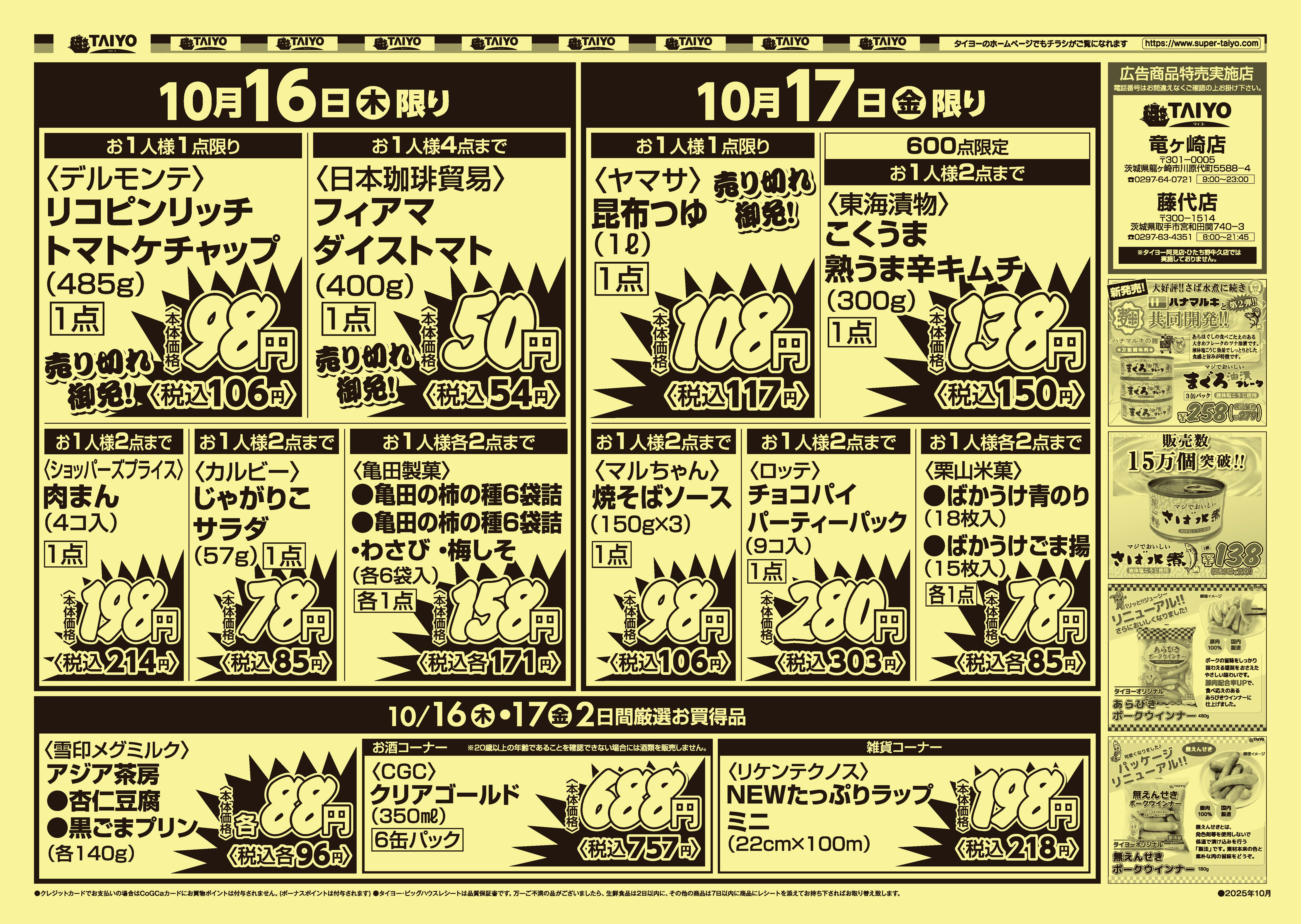 【竜ケ崎・藤代店限定】号外チラシ10月16日~17日
