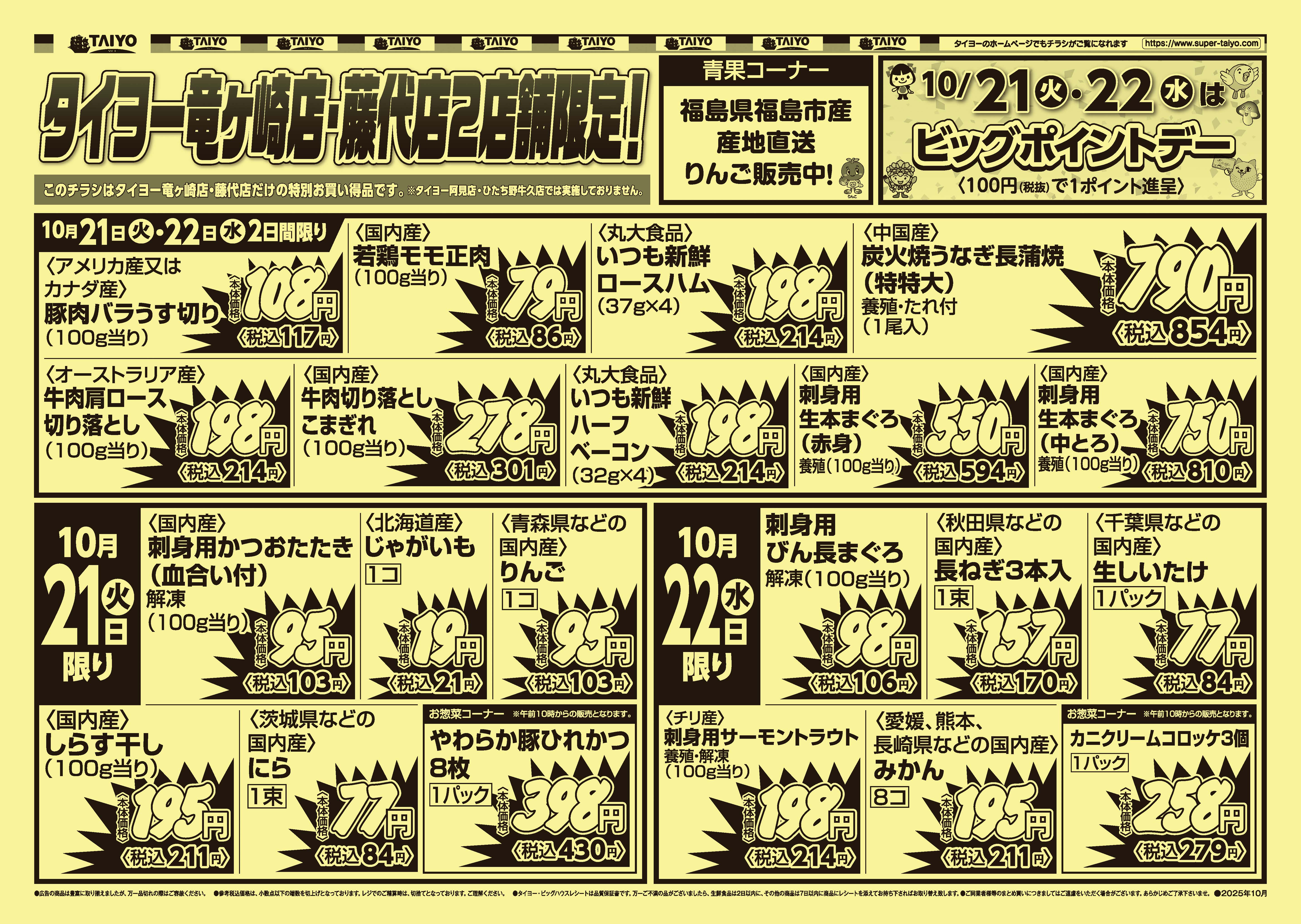 【竜ケ崎・藤代店限定】号外チラシ10月21日~22日