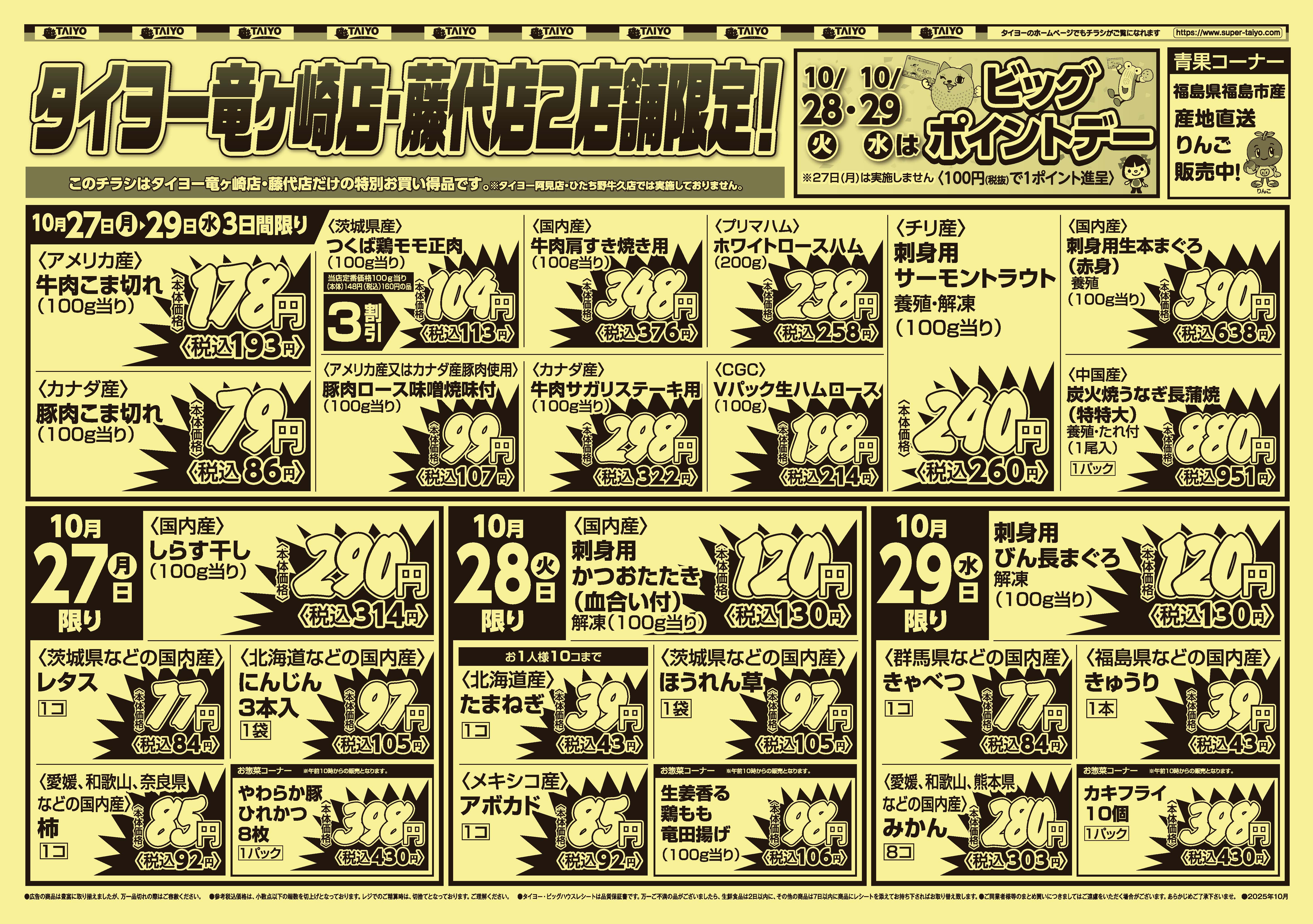 【竜ケ崎・藤代店限定】号外チラシ10月27日~29日