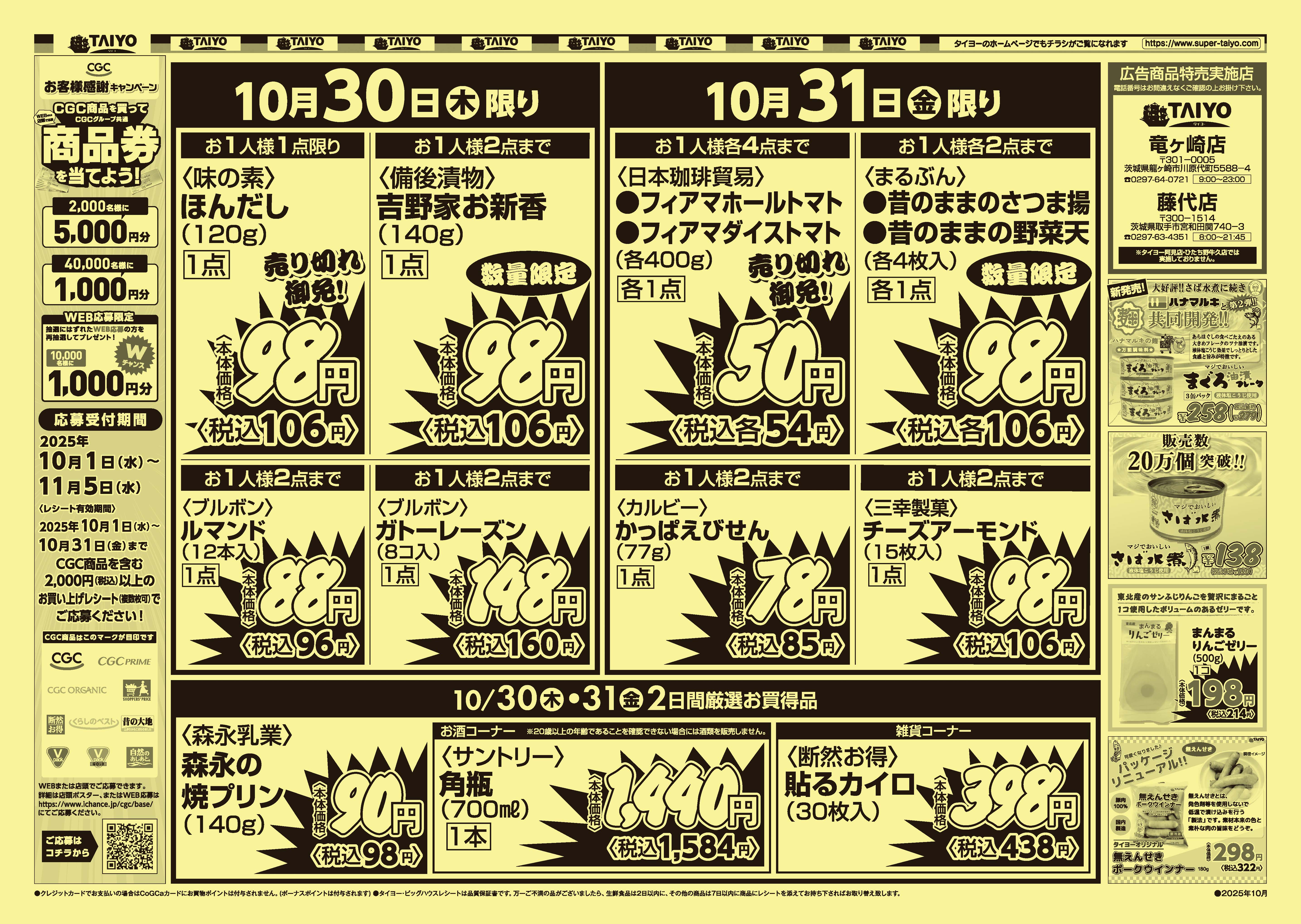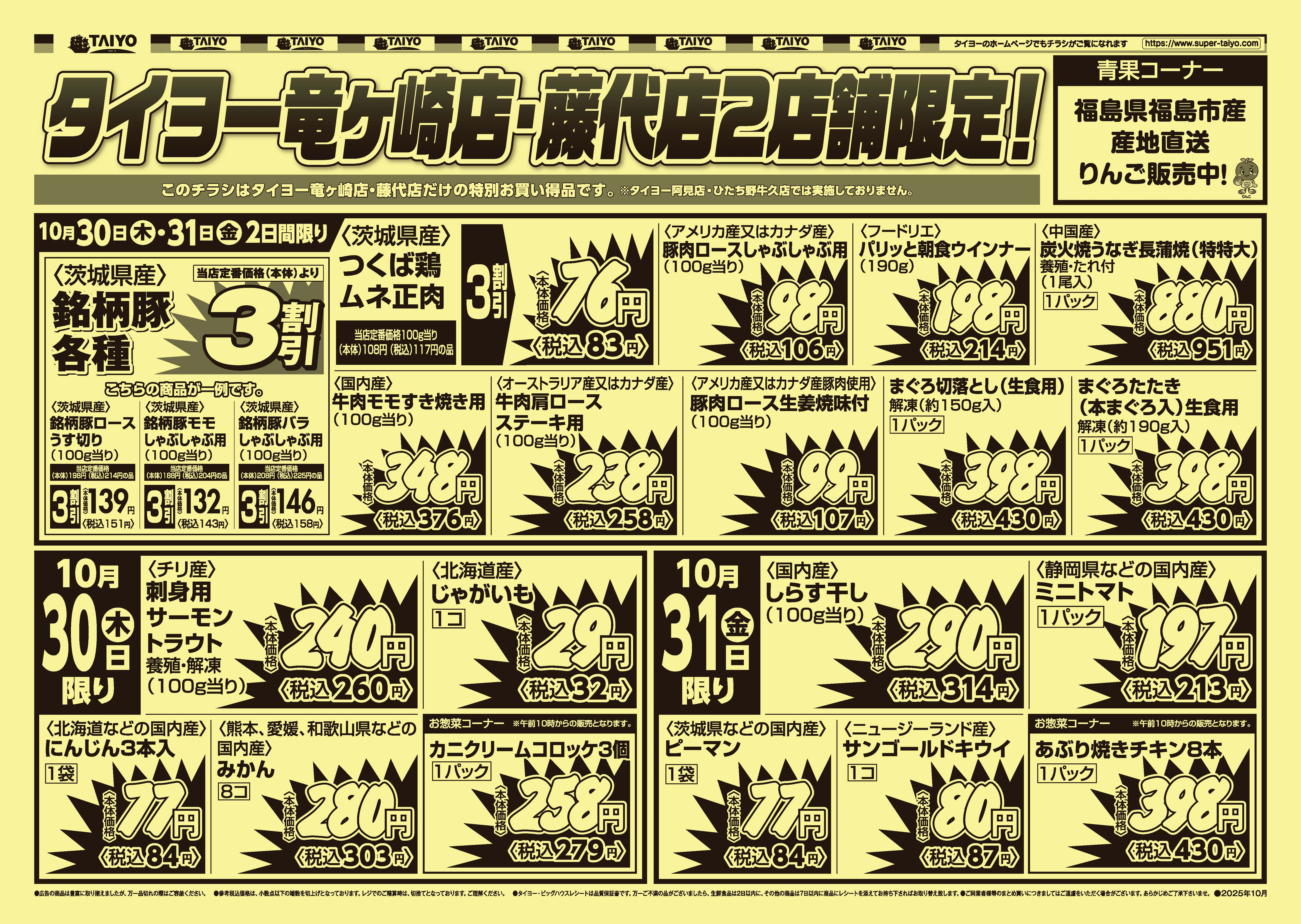 【竜ケ崎・藤代店限定】号外チラシ10月30日~31日
