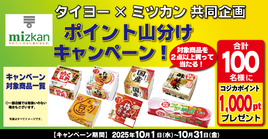 対象商品の中から、期間中にいづれか2点以上ご購入頂き、お支払い時にレジにてコジカカードを