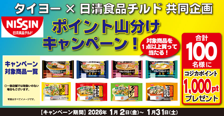 対象商品の中から、期間中にいづれか2点以上ご購入頂き、お支払い時にレジにてコジカカードを
