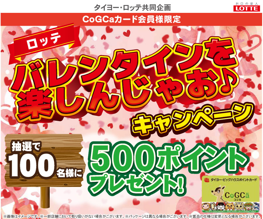 期間中にロッテの対象商品を3個以上お買い上げいただいた方の中から抽選で100名様にCoGCa 500ポイントをプレゼント!