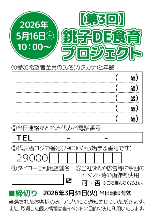 「食べタイヨー!知りタイヨー」BOXに投函してください。