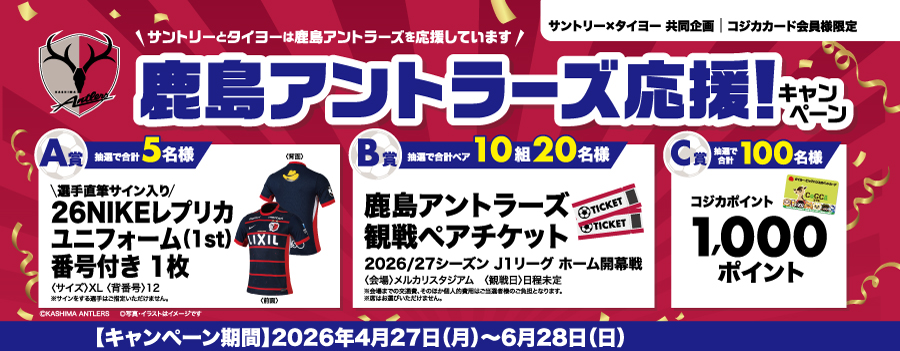 - 【コジカカード会員様限定】タイヨー×サントリー共同企画『鹿島アントラーズ応援!キャンペーン』(6/28まで)