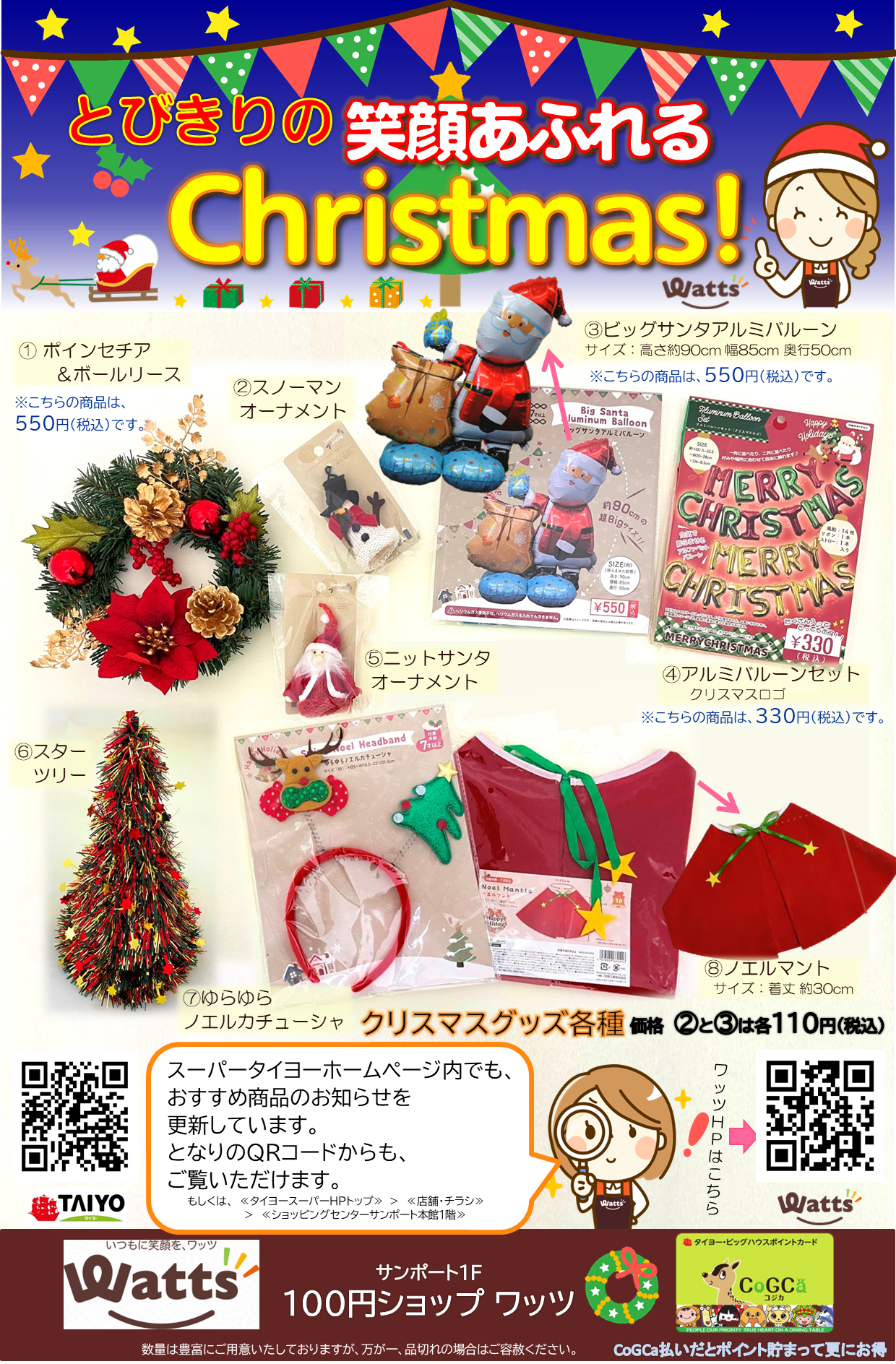 サンポート1F 100円ショップワッツから とびきりの笑顔あふれるChristmas!