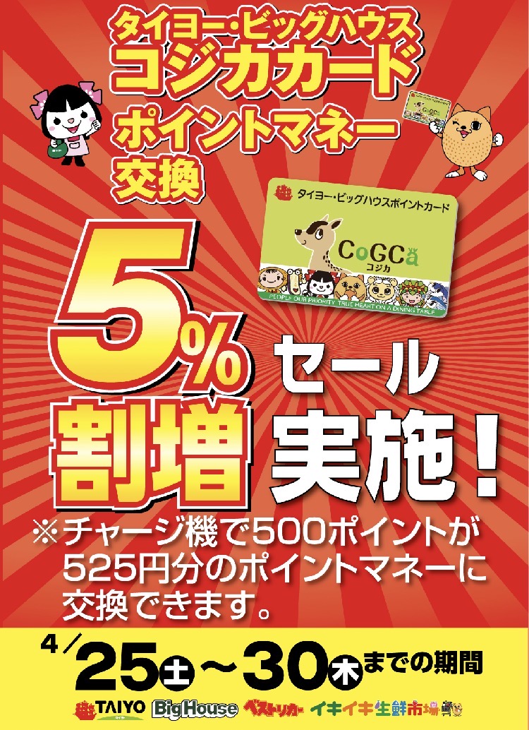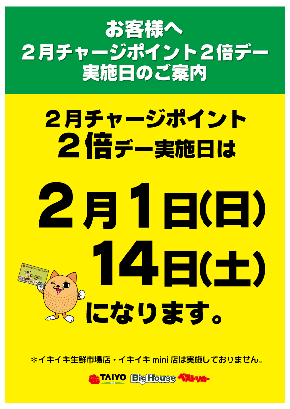 【重要なお知らせ】チャージポイント2倍デー実施日変更