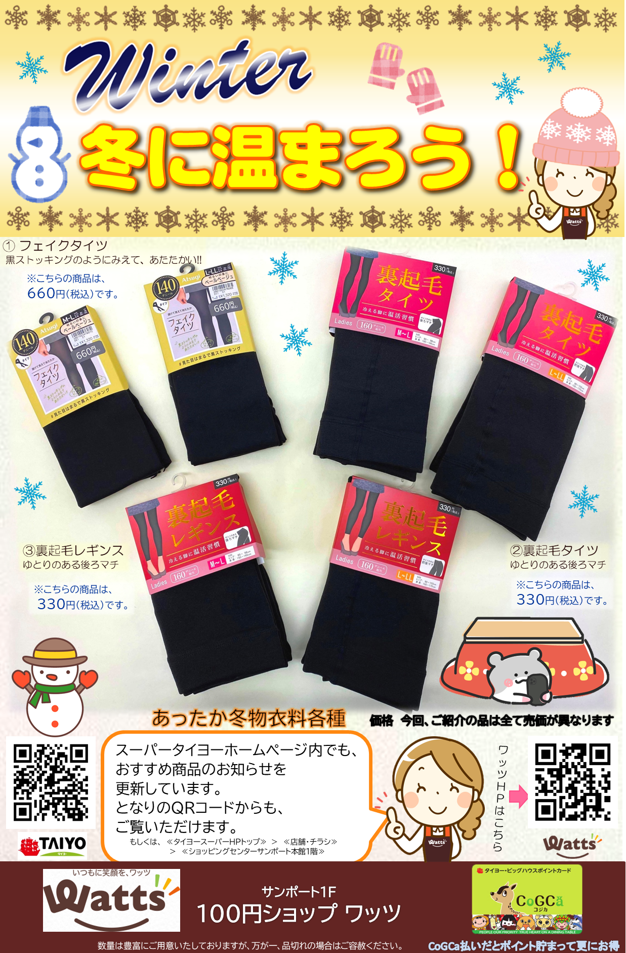 サンポート1F 100円ショップワッツから Winter 冬に温まろう!あったか冬物衣料!
