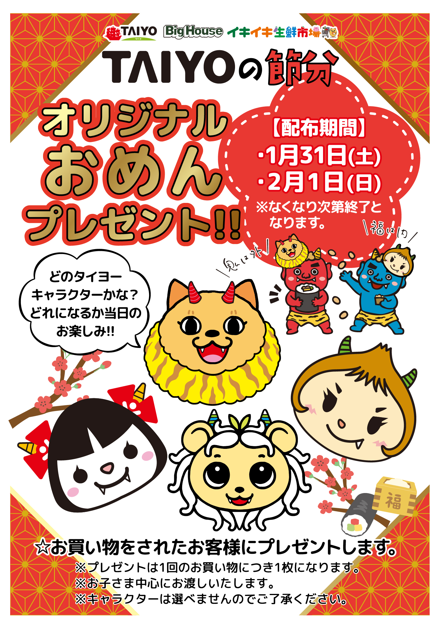 予告!1/31~2/1 節分お面プレゼント!