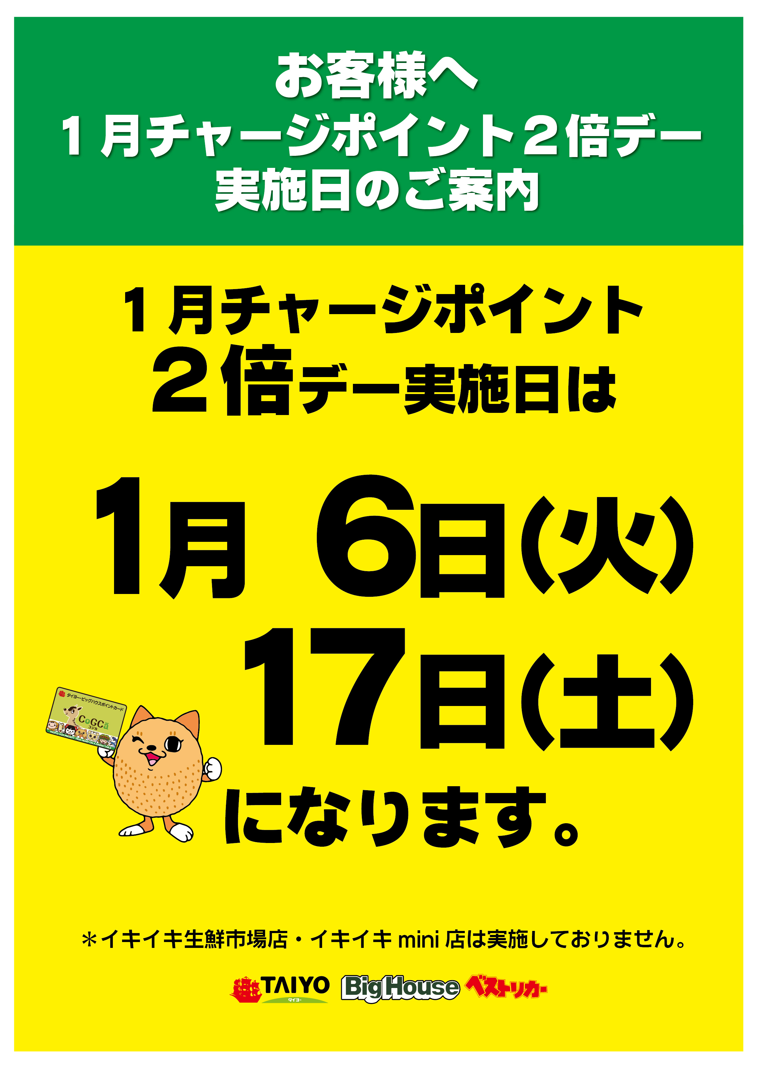 【告知】12月27(土)・28(日)ビッグポイント&チャージ2倍デー