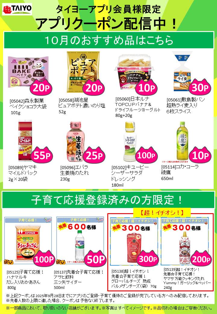※子育て応援クーポンは2025年9月28日までにアプリのご登録・子育て優待のご登録が完了している方へのみ配信しております。