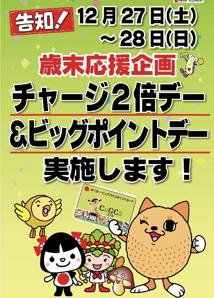12月1日・13日・27日チャージポイント2倍デー実施!